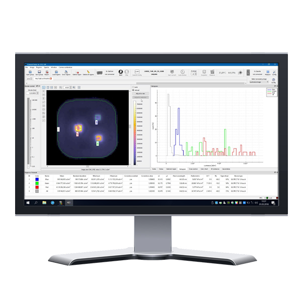 該分析軟件將檢測默認(rèn)的關(guān)注區(qū)域,顯示亮度級別,直方圖,并立即顯示其他有用數(shù)據(jù)。該系統(tǒng)有助于分析特定的細(xì)節(jié)和區(qū)域,甚至提供必要的更正。與典型的實驗室設(shè)備一樣,該儀器可提供絕對的亮度精度。