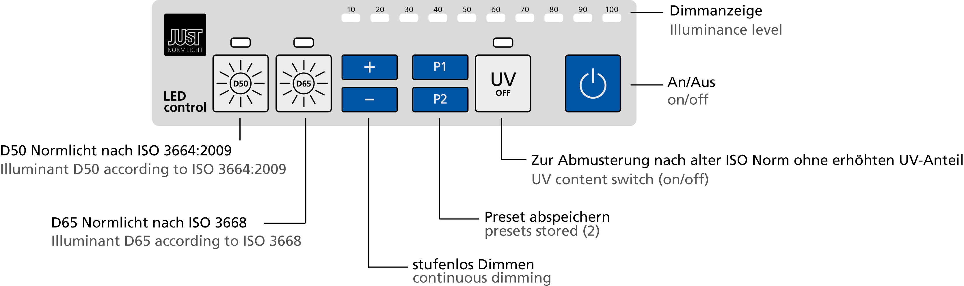 JUST獨特的LED照明技術,經Fogra認證的LED照明設備,符合ISO 3664:2009,專利號:P。美國8,592,748 B2號
