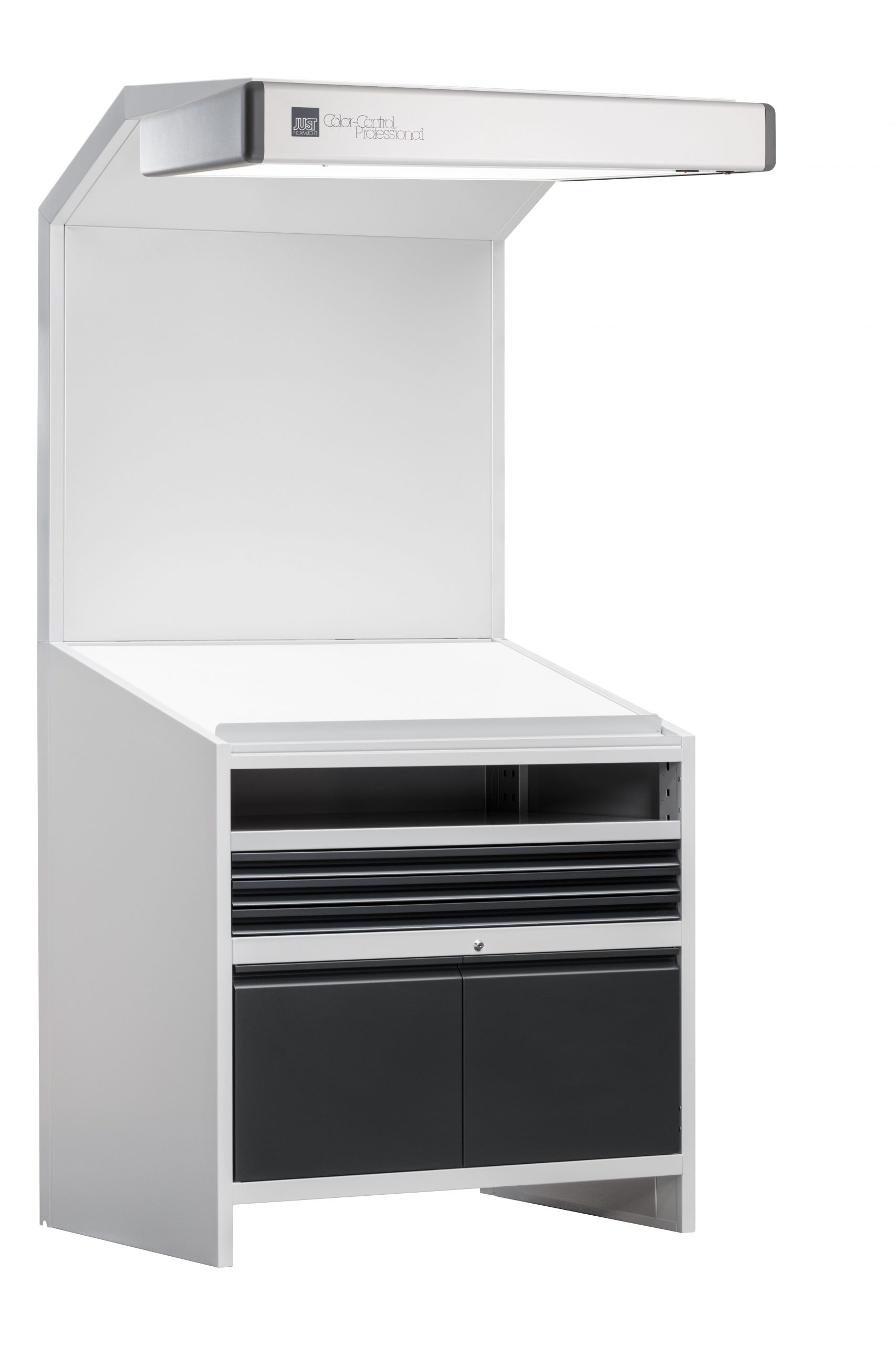 在D50光源下對(duì)多種格式進(jìn)行可靠的關(guān)鍵色彩檢查。經(jīng)典的彩色查看組合以及實(shí)用的底柜和擱板。有組織地存放地塊,樣張和重要的印刷用具。