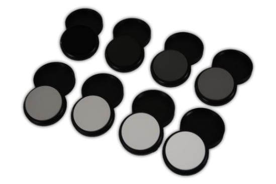提供漫反射標(biāo)準(zhǔn)板套裝,全套由直徑為1.25或2.00英寸的四塊或八塊標(biāo)準(zhǔn)參考板組成。四塊套中四塊標(biāo)準(zhǔn)參考板的反射 比值分別為:99%、75%、50%和2%。八塊套中八塊標(biāo)準(zhǔn)參考板的反射比值分別為:99%、80%、60%、40%、20%、10%、5%和2%。