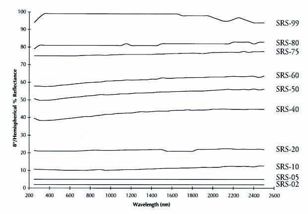 單獨(dú)提供漫反射標(biāo)準(zhǔn)白板(直徑為1.25或2.00英寸),其反射比值選項(xiàng)有:99%、80%、75%、60%、50%、40%、25%、20%、10%、5%和2%。