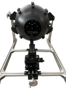 定制頻閃光纖積分球系統(tǒng),用于成像相機(jī)的成像視角定標(biāo),同時(shí)也可以用于評(píng)價(jià)成像的幀頻。系統(tǒng)包含內(nèi)壁全黑無反射積分球,頻閃LED光源盒及控制軟件。由積分球球壁等角度向球心發(fā)射準(zhǔn)直光束,每一束準(zhǔn)直光光斑直徑2mm,發(fā)散角較小,且亮度和閃爍頻率可調(diào)。